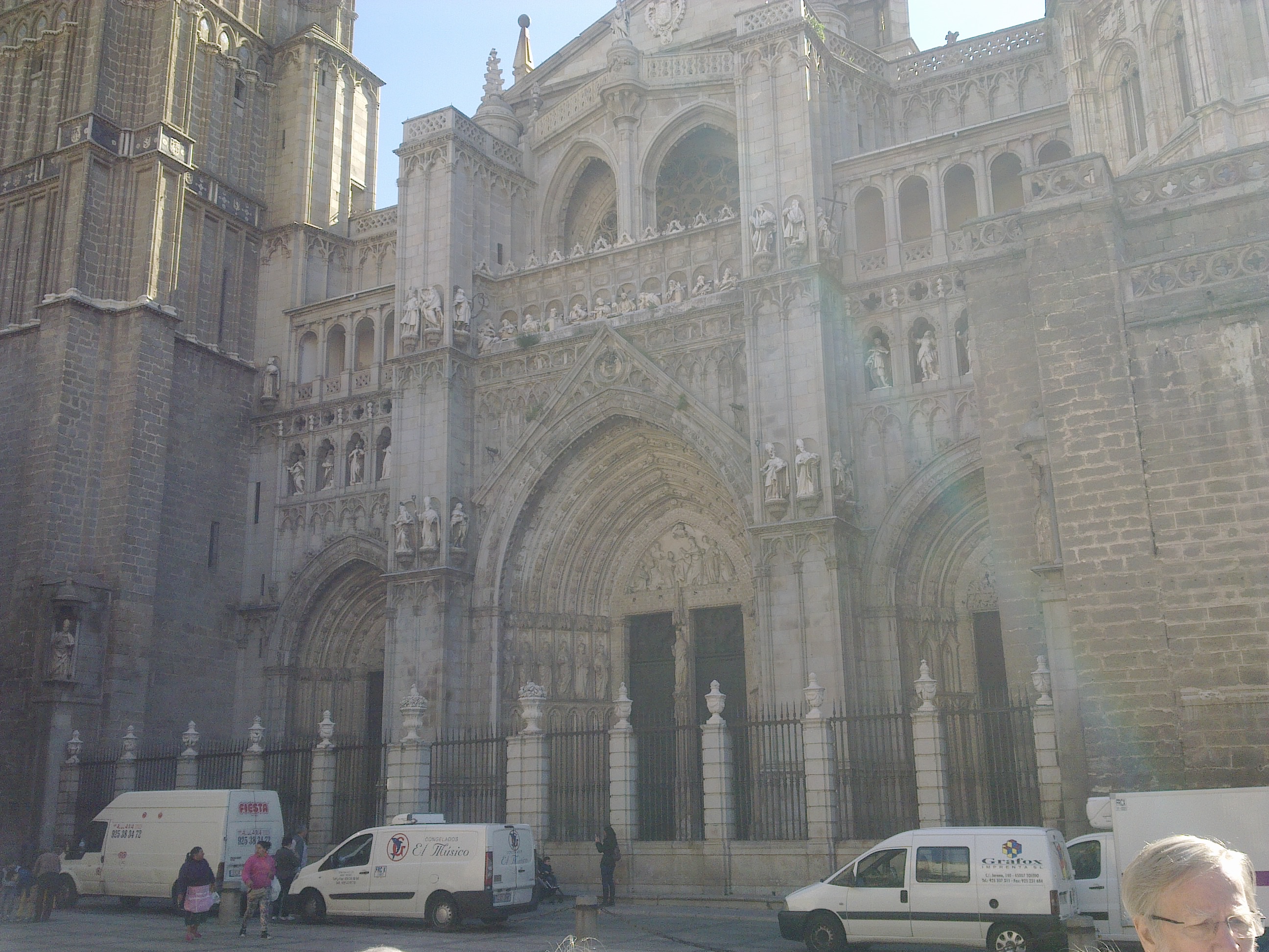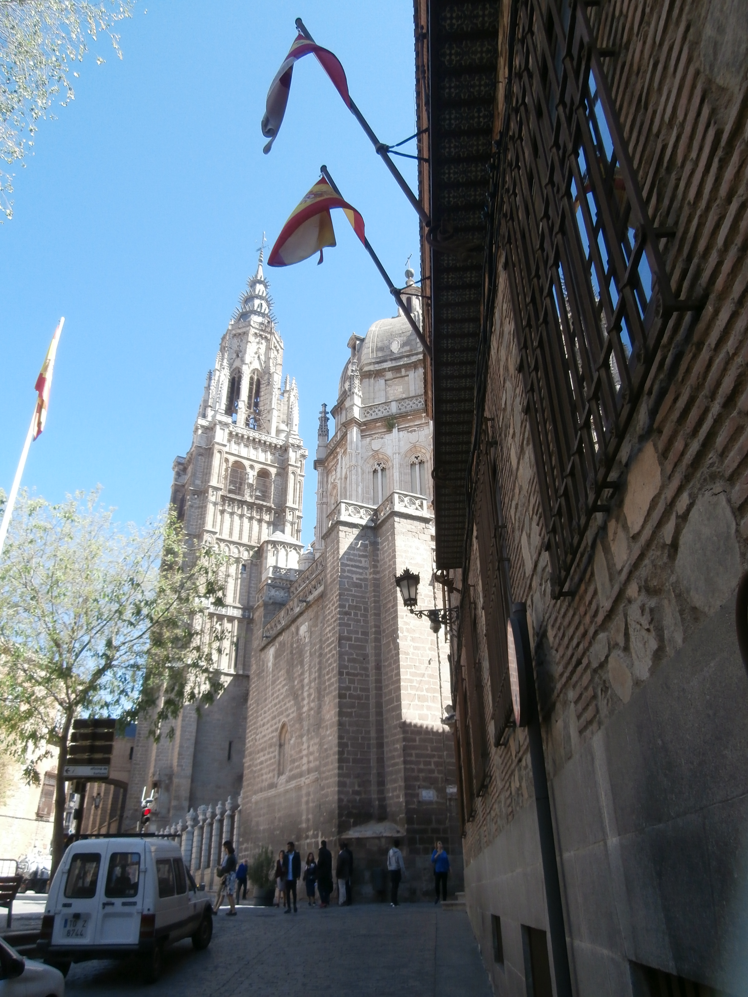 Toledon katedraalin torneja ja muureja vanhan kaupungin kapeiden kujien seassa. Katedraaliin ei päästy käymään mutta käytiin El Greco -museossa.