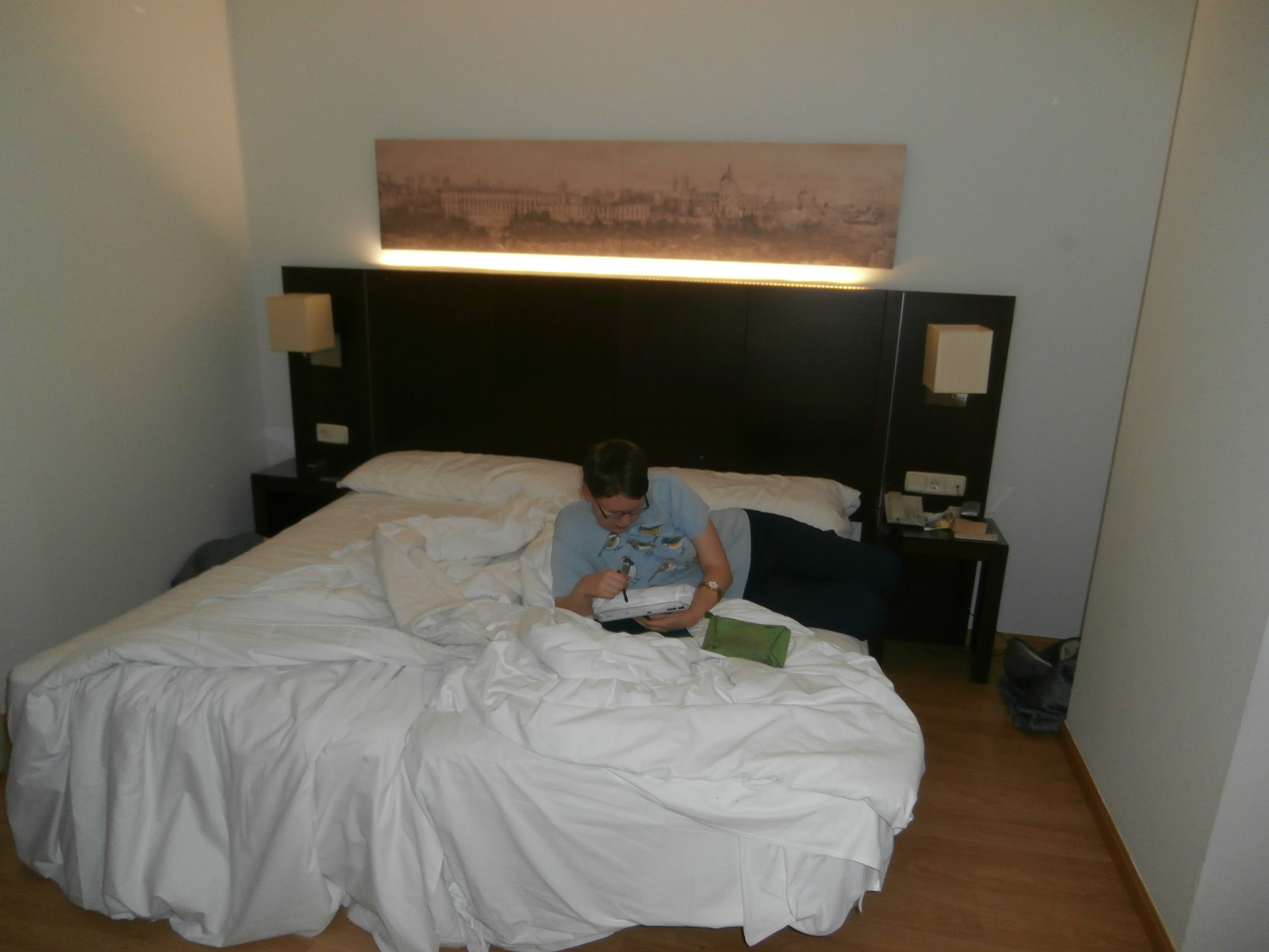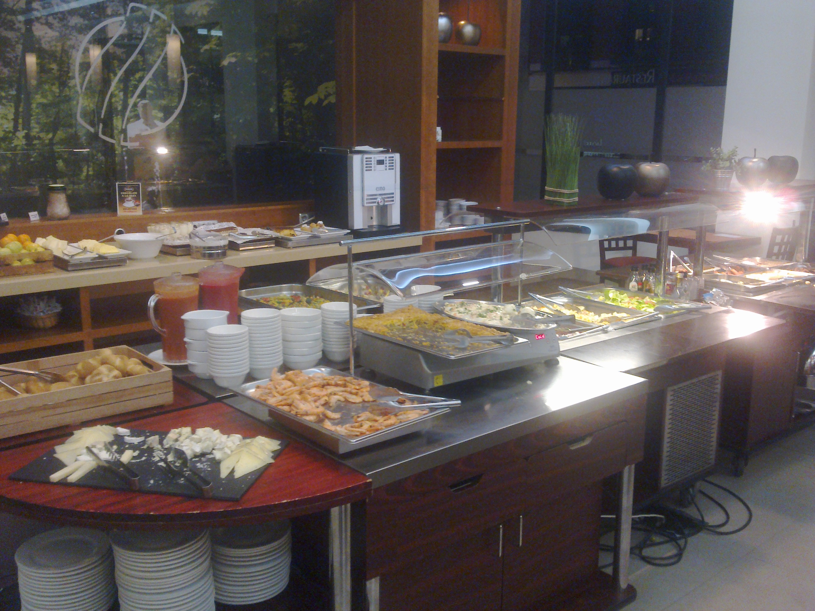 Ravintolasali. Ensimmäinen aamiaisemme Madridissa ja myöhempi päivällisbuffet.